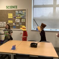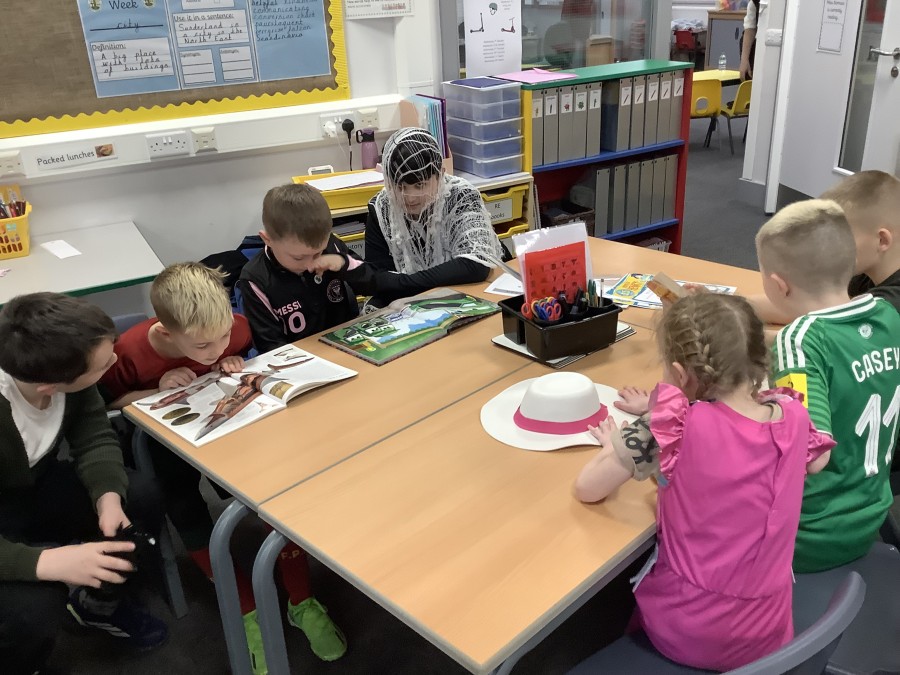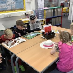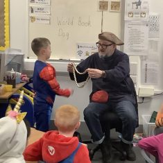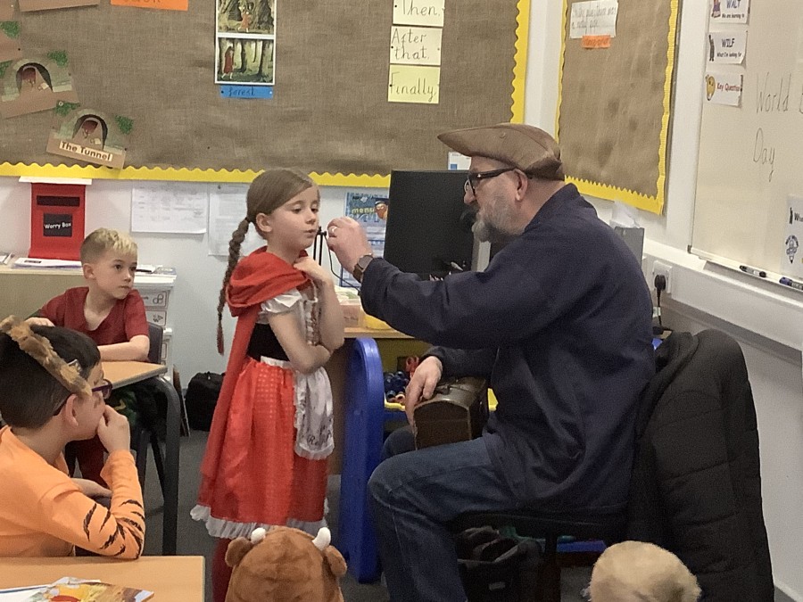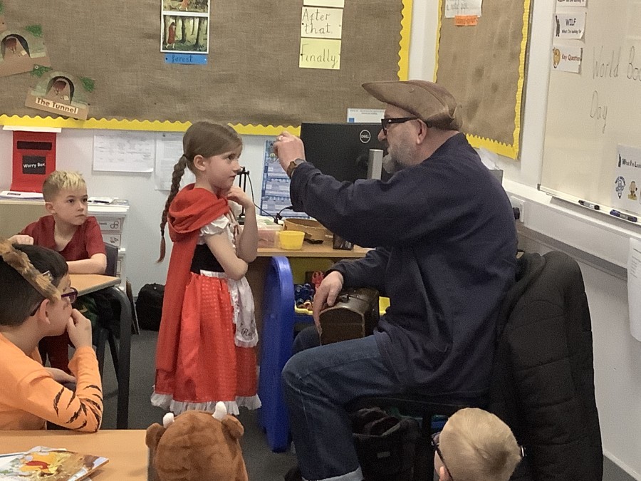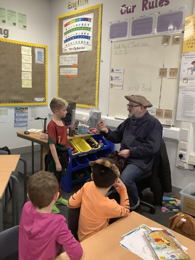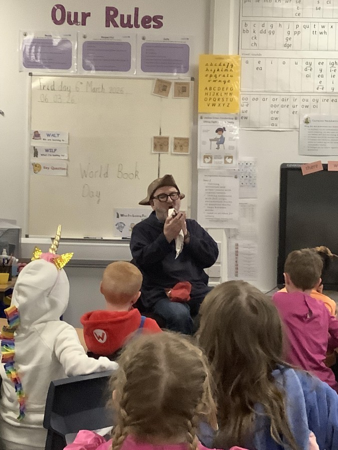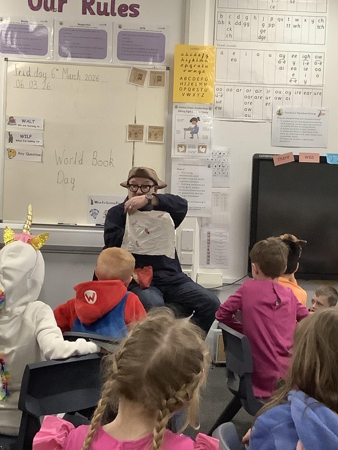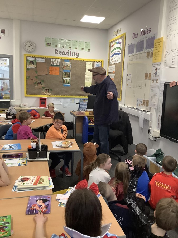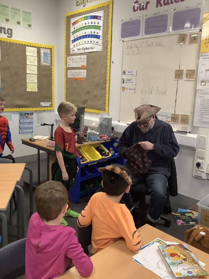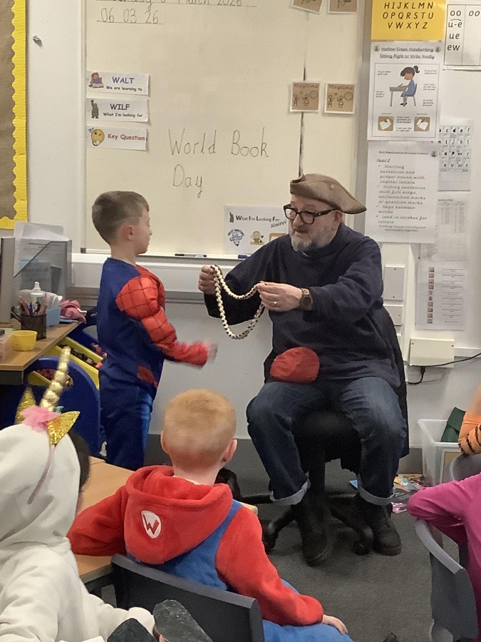 The focus of World Book Day this year was ‘Reading for Pleasure.’ All of the children were invited to come into school dressed as a character from a book and to bring in a book that they enjoy reading to discuss with their classmates. During the day, all classes were visited by ‘Captain Raggybeard’ who told them a story about the day the Angel of the North ran away and then a story based upon pirates and mermaids. The children were spellbound and came out full of chatter about how the storyteller engaged them with his expression and the voices that he used.