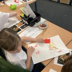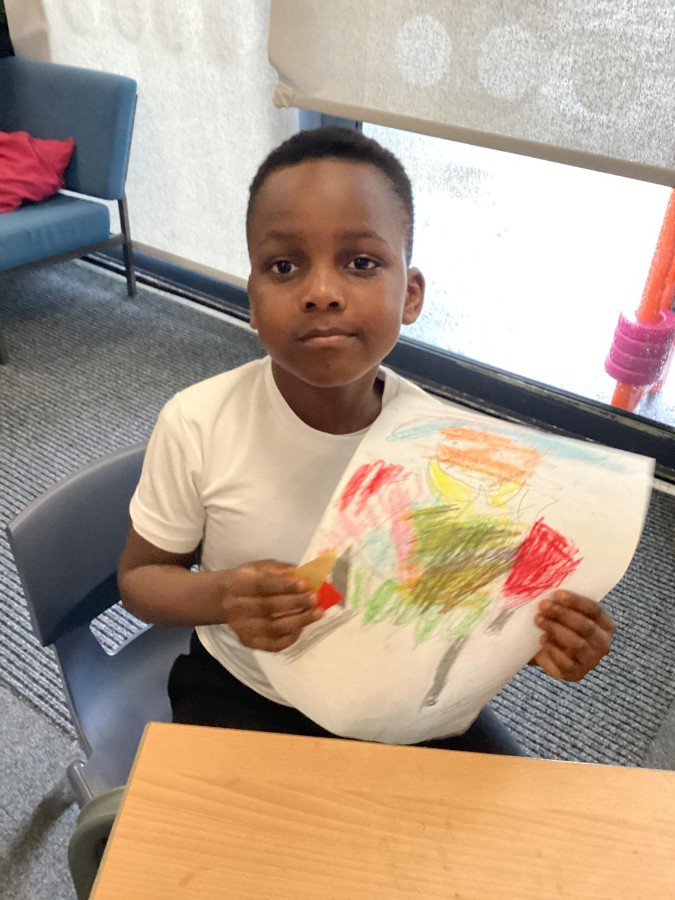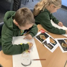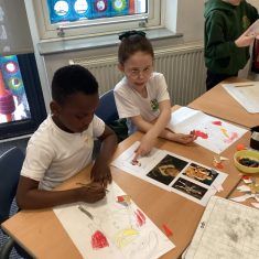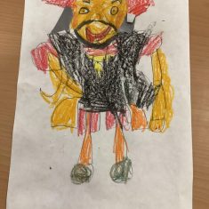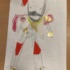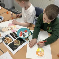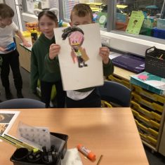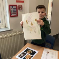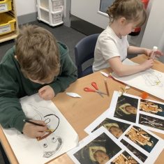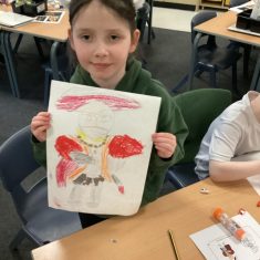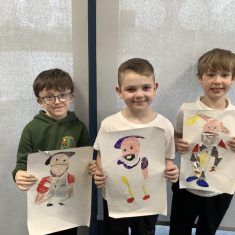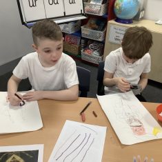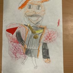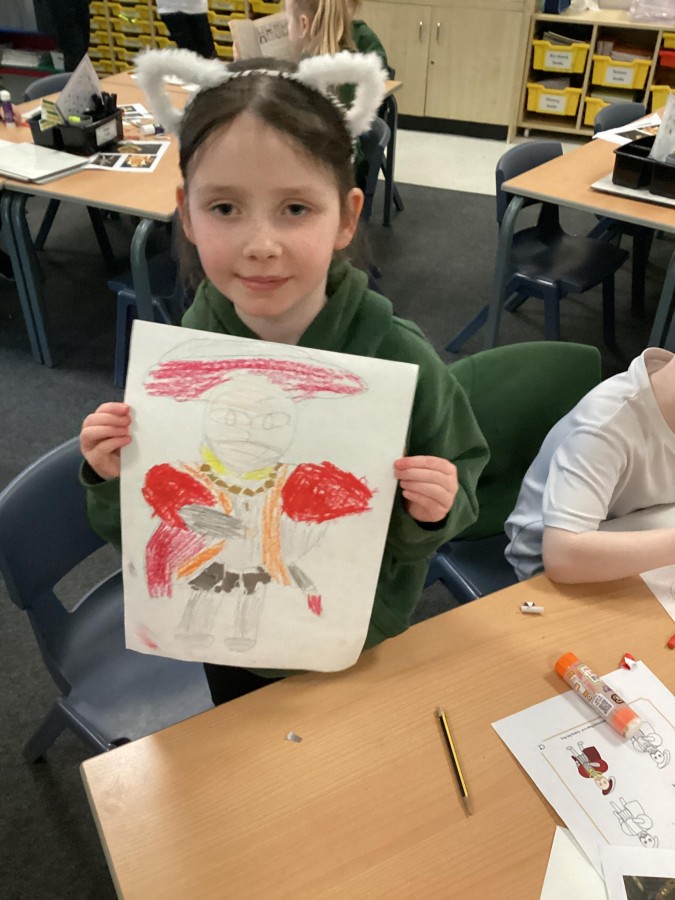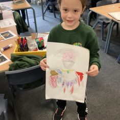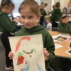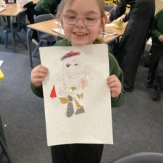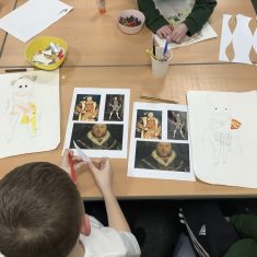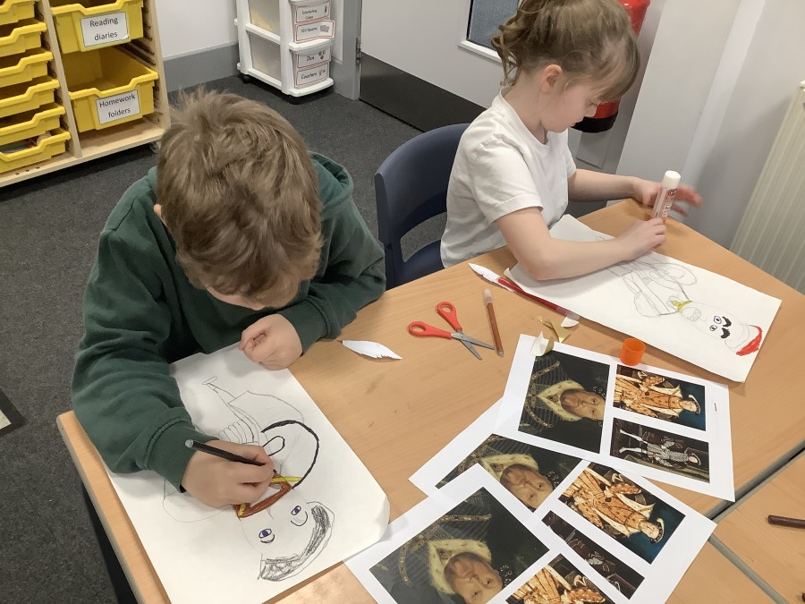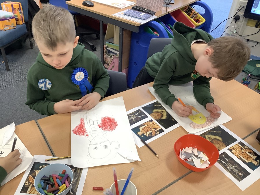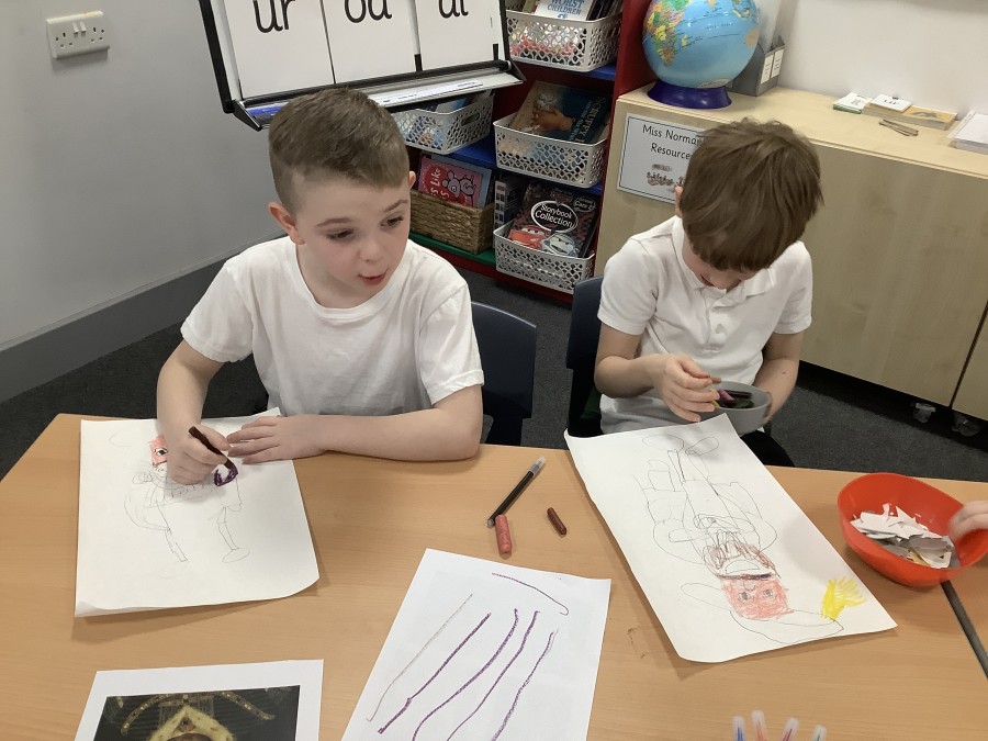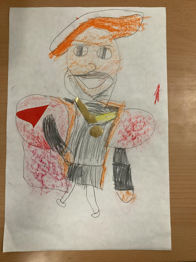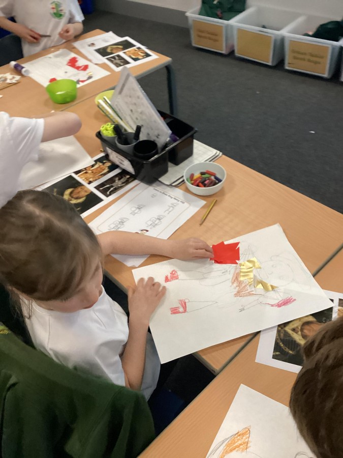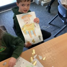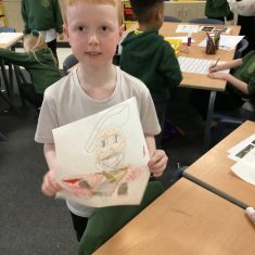 Finally, the children followed a step-by-step guide to draw a portrait of Henry VIII. They used crayons and felt tips to colour, before adding luxurious jewels and a feather.