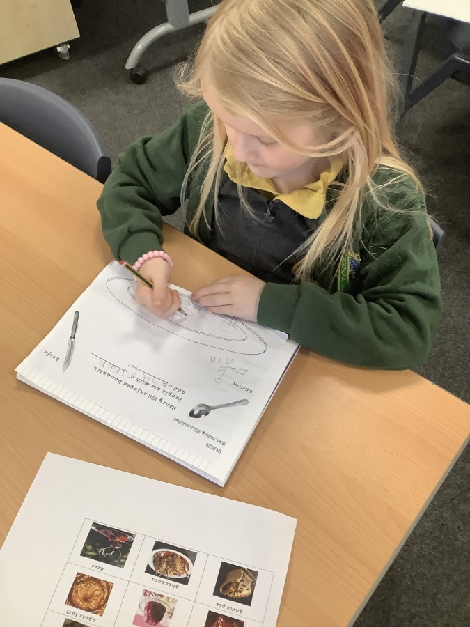 Then, the children thought about whether Henry VIII was a healthy king. They concluded that a regular diet of wild boar, apple tart and wine was very high in fat and sugar, making him very unhealthy.