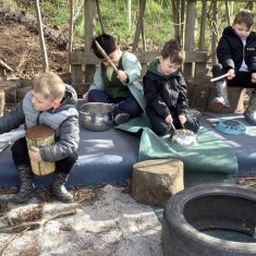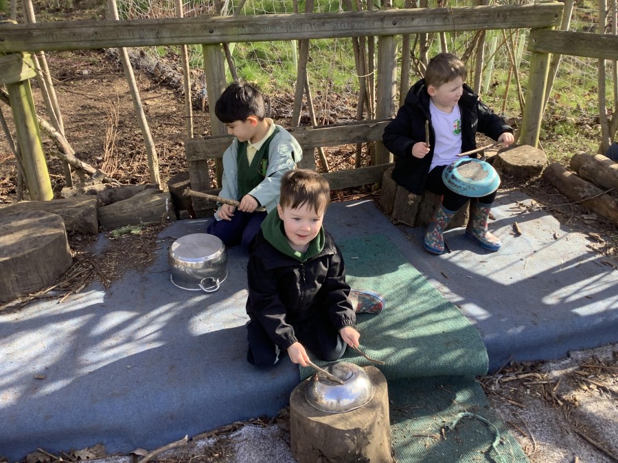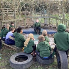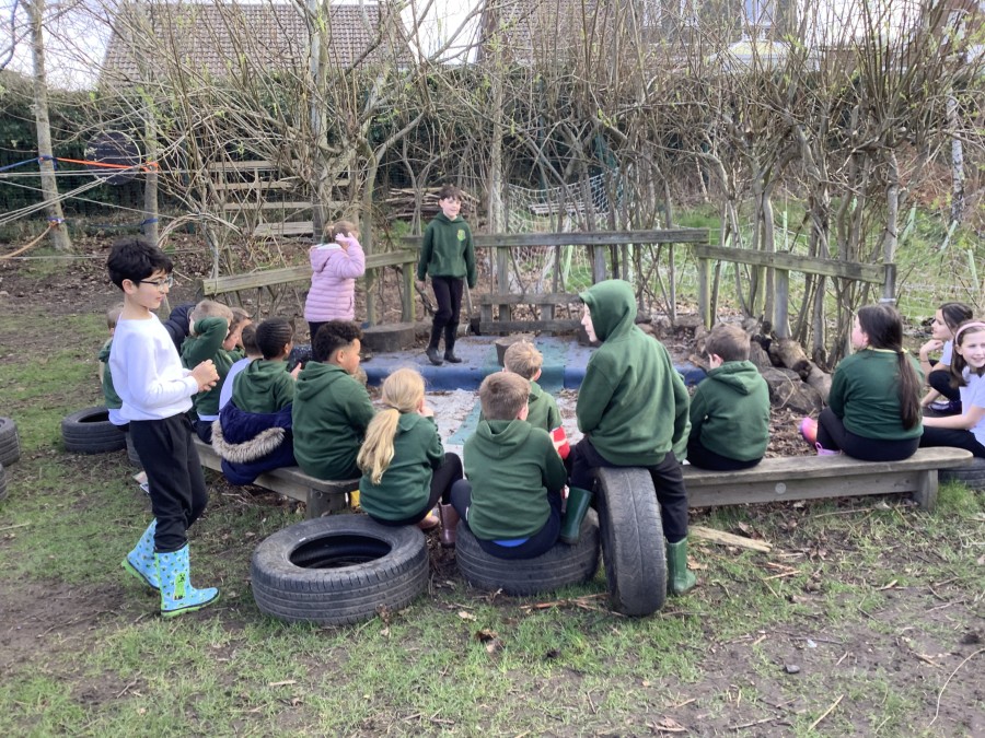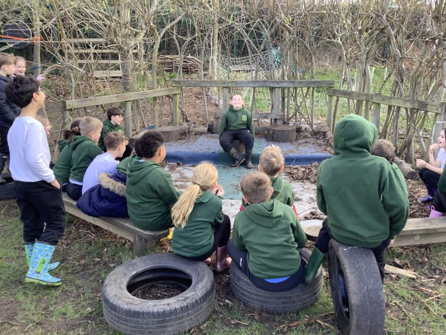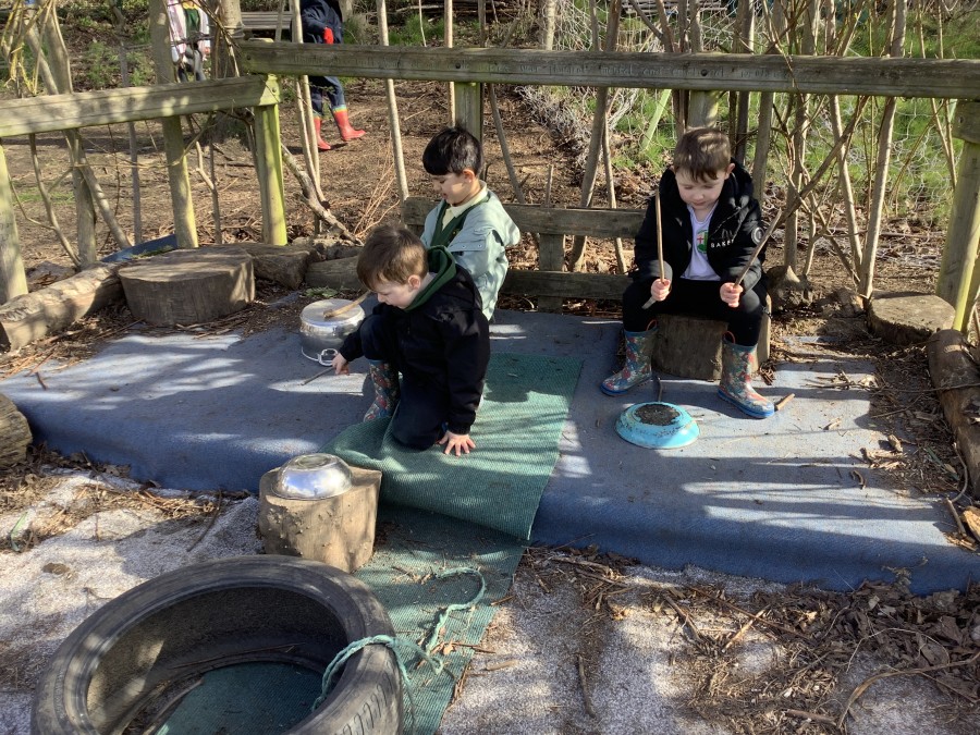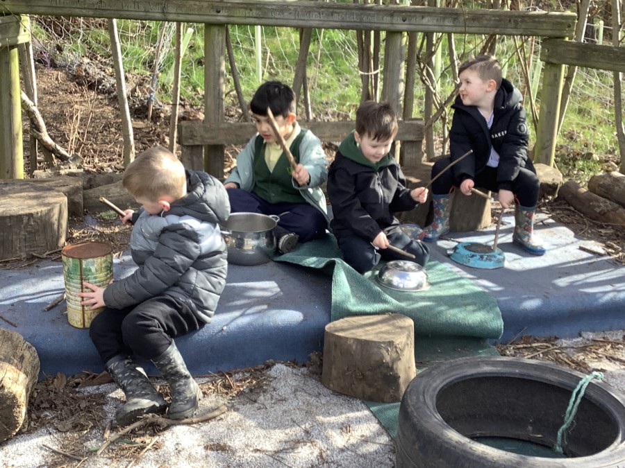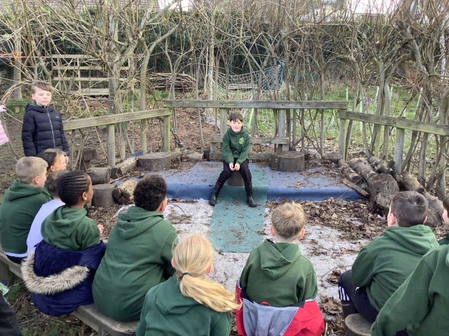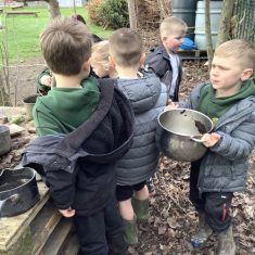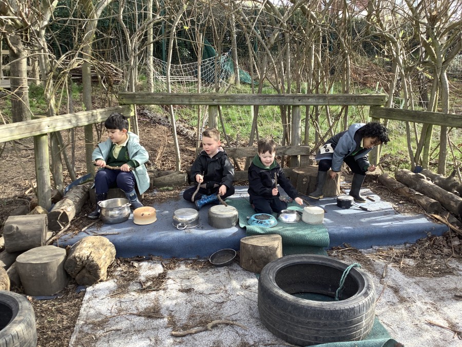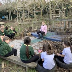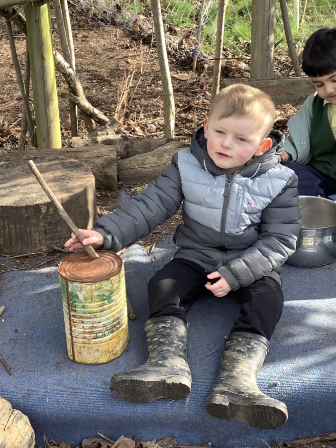 Year 4 decided to use the Forest School Stage to tell jokes, very entertaining. The hens are enjoying the sunshine and the attention. The Mud Kitchen Cafe is in full swing with all sorts of delicious muddy dishes being created. Then Reception took over the stage. It all started with one boy, a stick and a pan. Then a friend joined it and before we knew it there was a whole percussion section banging out beats. Year 2 started preparing the raised beds ready for planting and then the weather turned. That didn’t stop the fun though as Years 3 and 6 decorated willow shapes that will be used outside to brighten up some of our fencing. A busy week for everyone.