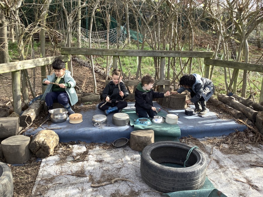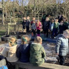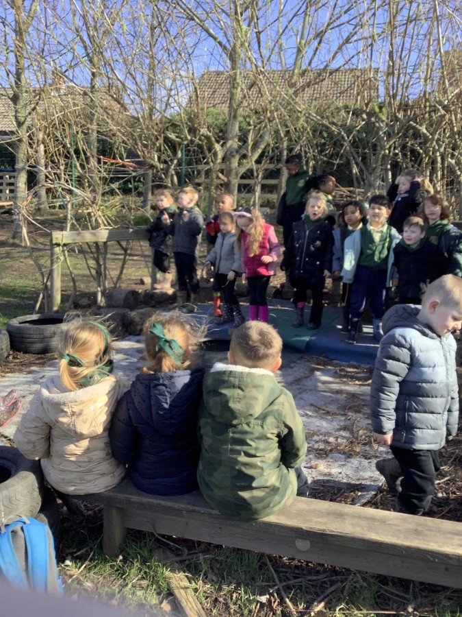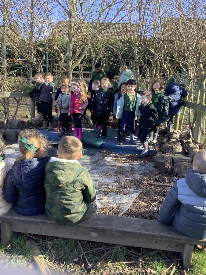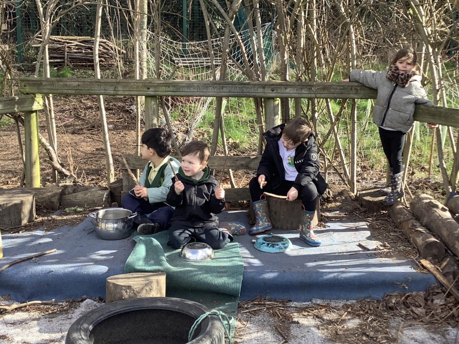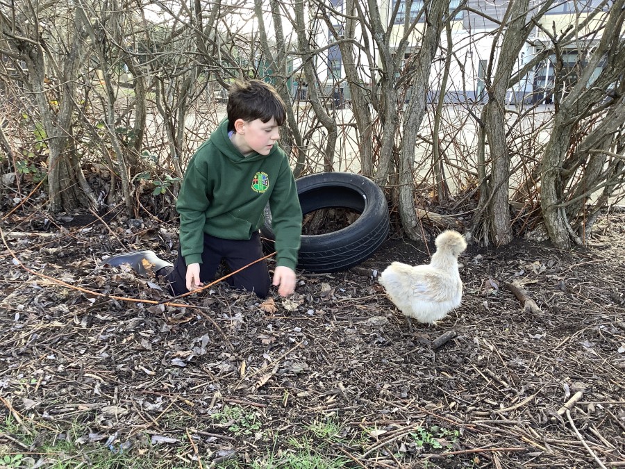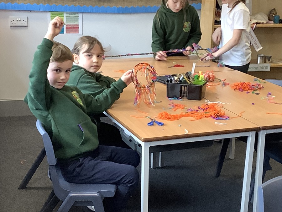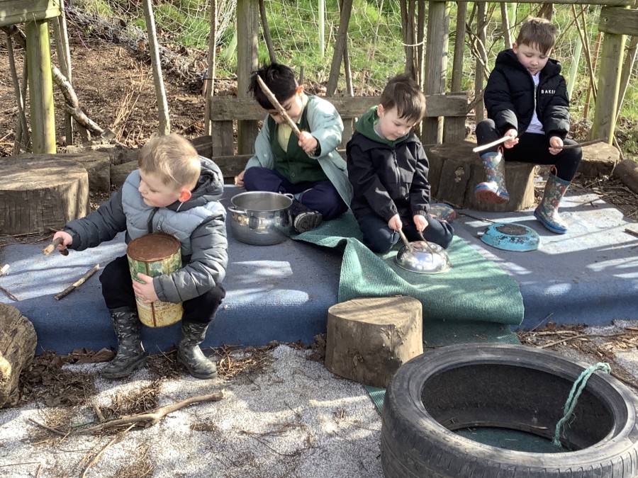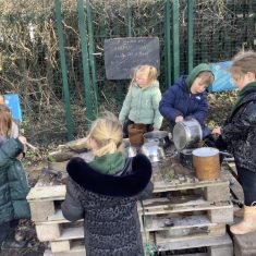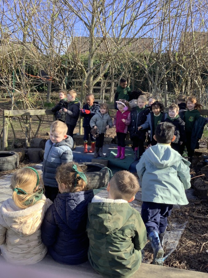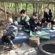 Year 4 decided to use the Forest School Stage to tell jokes, very entertaining. The hens are enjoying the sunshine and the attention. The Mud Kitchen Cafe is in full swing with all sorts of delicious muddy dishes being created. Then Reception took over the stage. It all started with one boy, a stick and a pan. Then a friend joined it and before we knew it there was a whole percussion section banging out beats. Year 2 started preparing the raised beds ready for planting and then the weather turned. That didn’t stop the fun though as Years 3 and 6 decorated willow shapes that will be used outside to brighten up some of our fencing. A busy week for everyone.