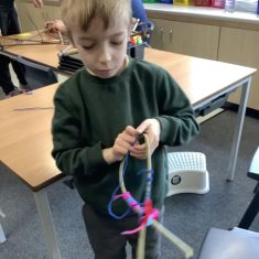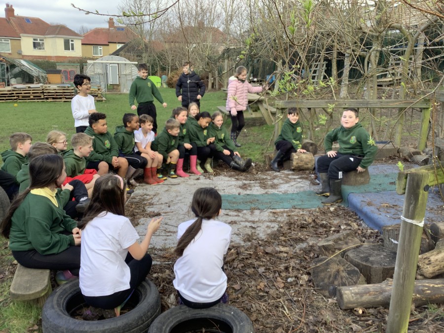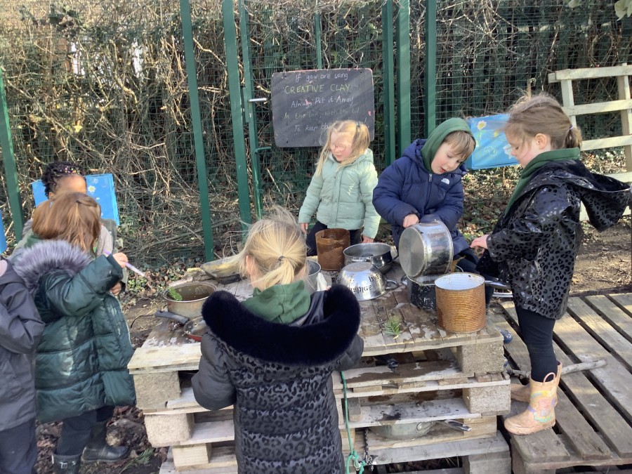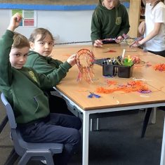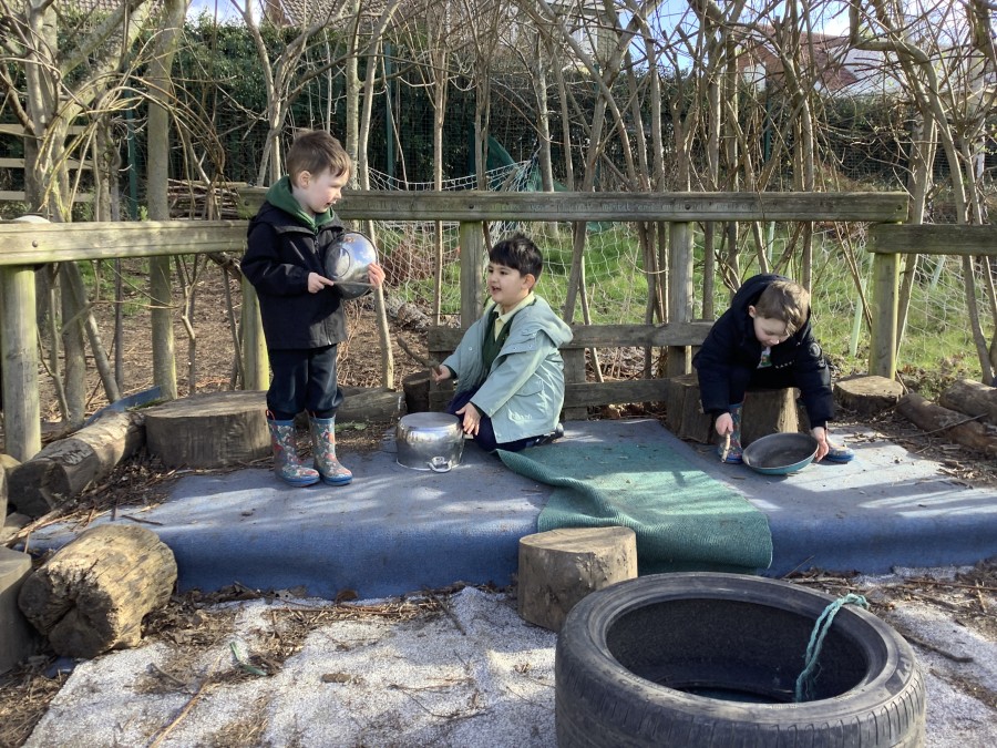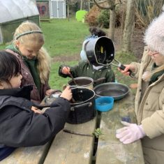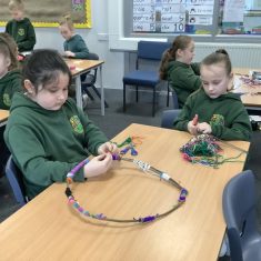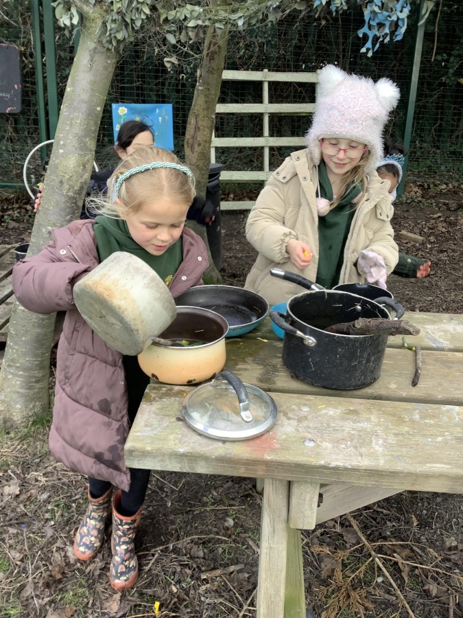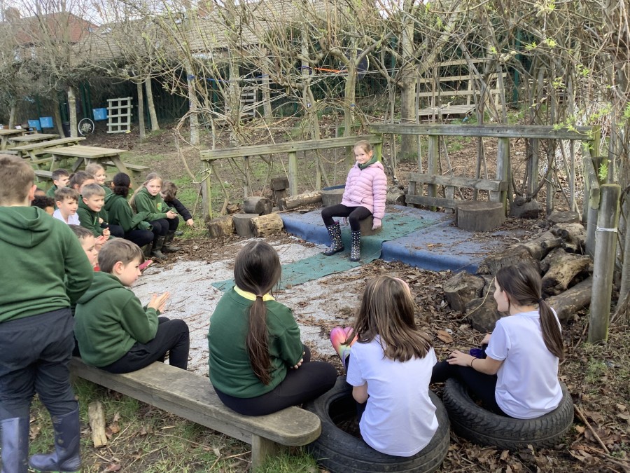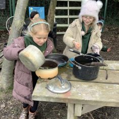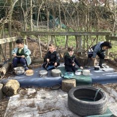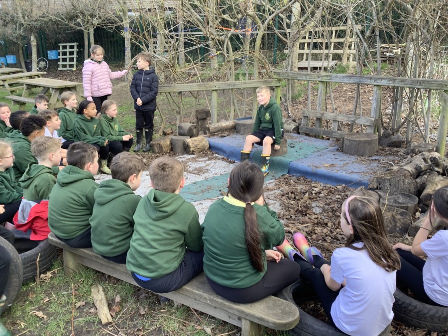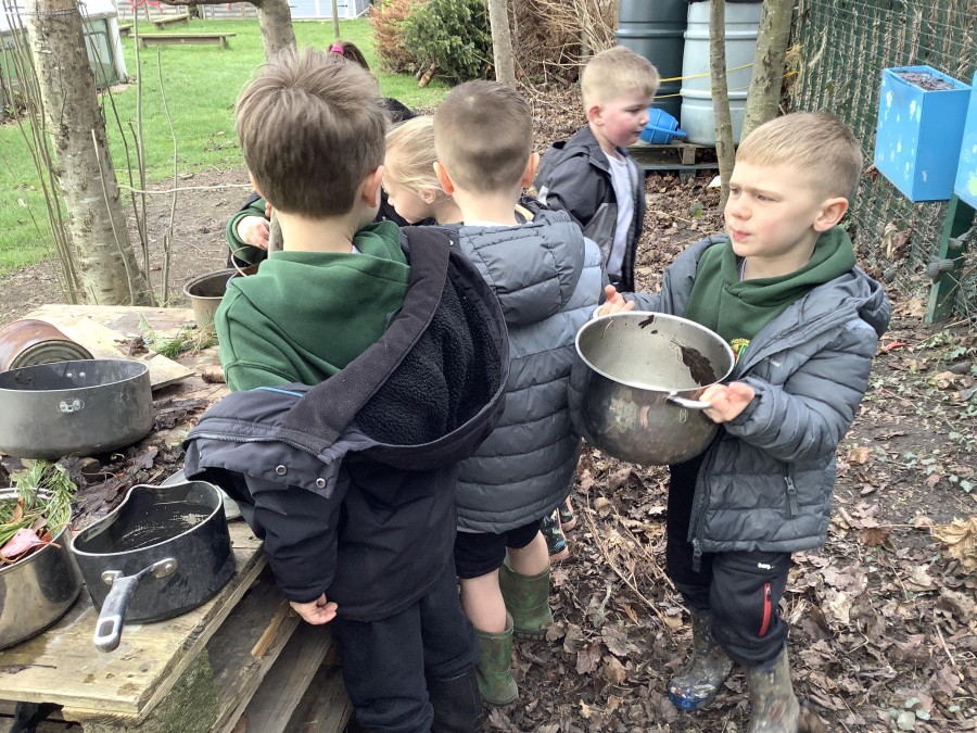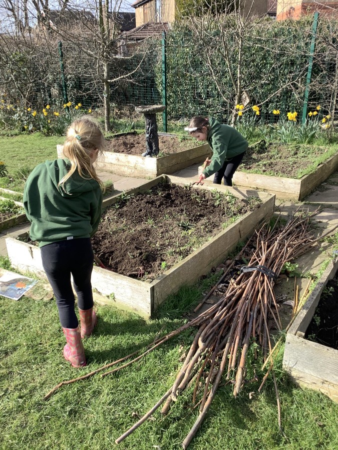 Year 4 decided to use the Forest School Stage to tell jokes, very entertaining. The hens are enjoying the sunshine and the attention. The Mud Kitchen Cafe is in full swing with all sorts of delicious muddy dishes being created. Then Reception took over the stage. It all started with one boy, a stick and a pan. Then a friend joined it and before we knew it there was a whole percussion section banging out beats. Year 2 started preparing the raised beds ready for planting and then the weather turned. That didn’t stop the fun though as Years 3 and 6 decorated willow shapes that will be used outside to brighten up some of our fencing. A busy week for everyone.