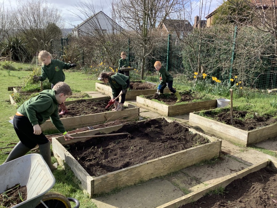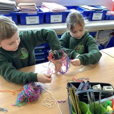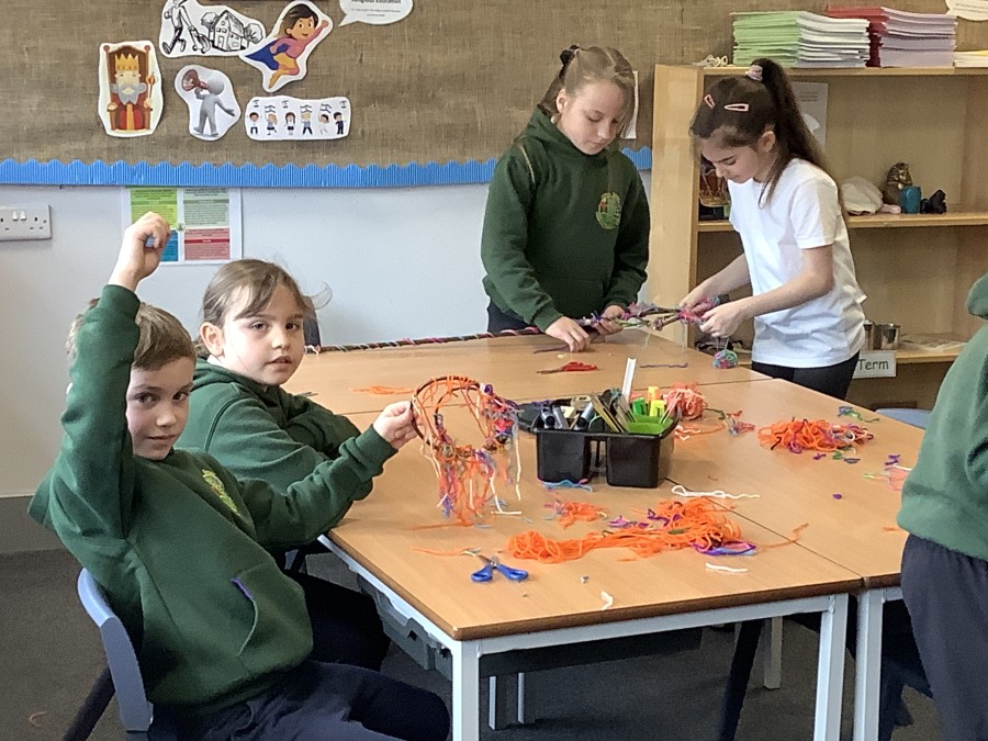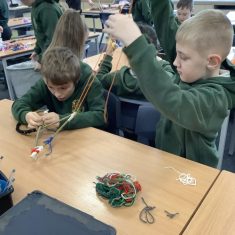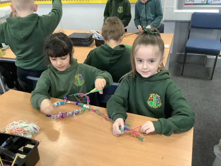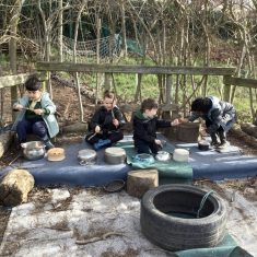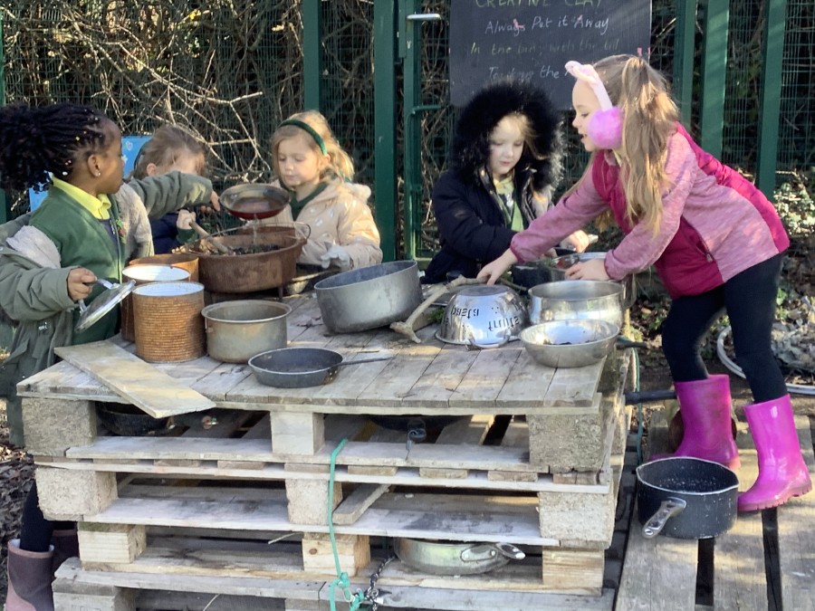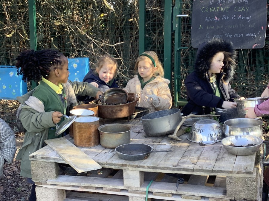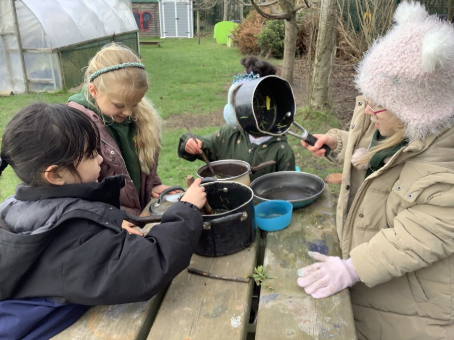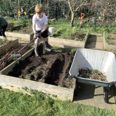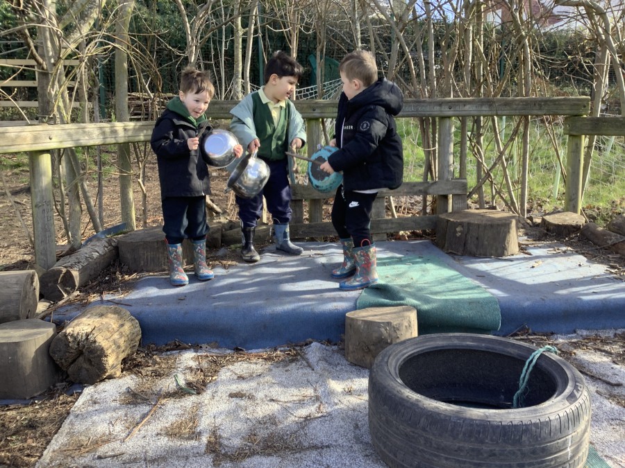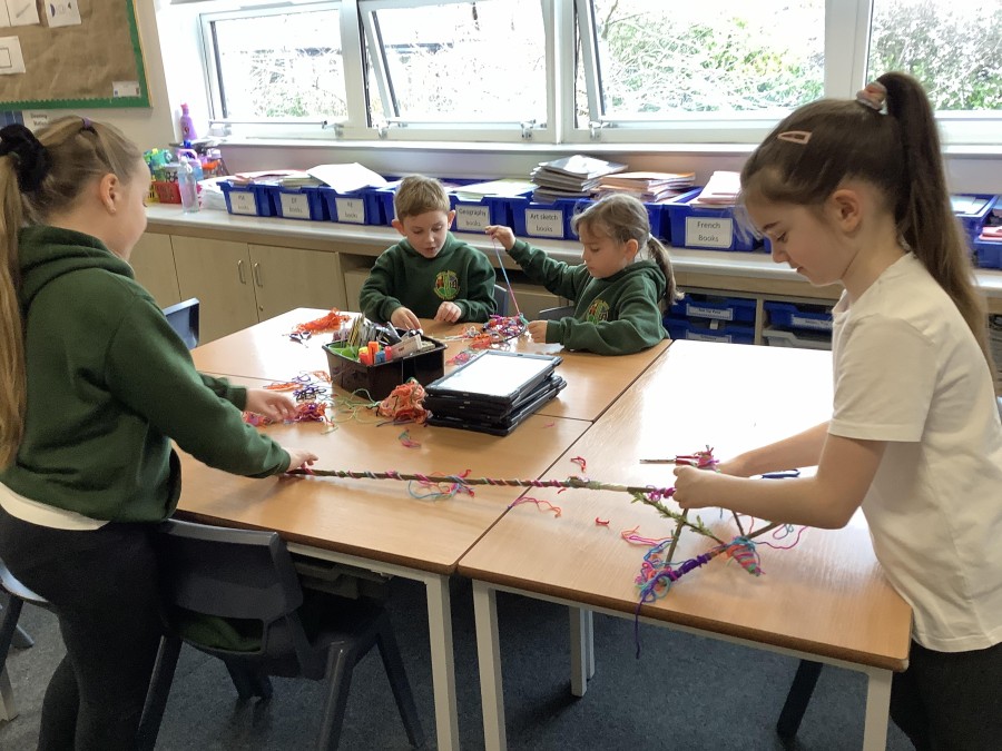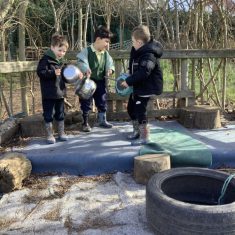 Year 4 decided to use the Forest School Stage to tell jokes, very entertaining. The hens are enjoying the sunshine and the attention. The Mud Kitchen Cafe is in full swing with all sorts of delicious muddy dishes being created. Then Reception took over the stage. It all started with one boy, a stick and a pan. Then a friend joined it and before we knew it there was a whole percussion section banging out beats. Year 2 started preparing the raised beds ready for planting and then the weather turned. That didn’t stop the fun though as Years 3 and 6 decorated willow shapes that will be used outside to brighten up some of our fencing. A busy week for everyone.