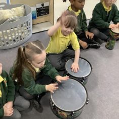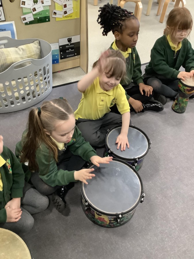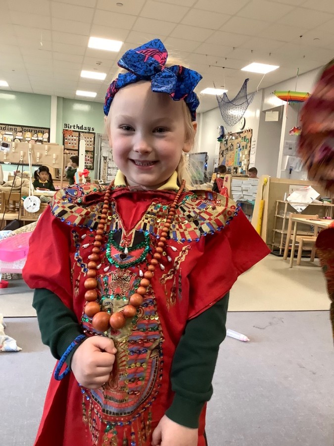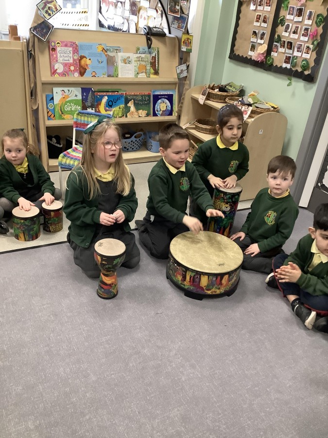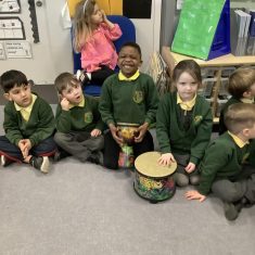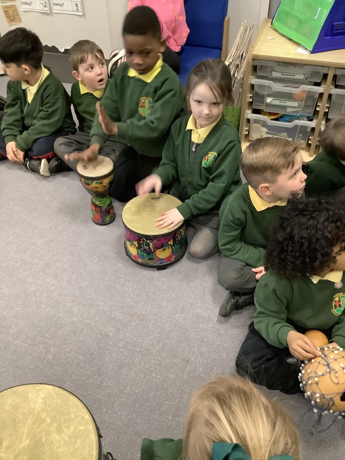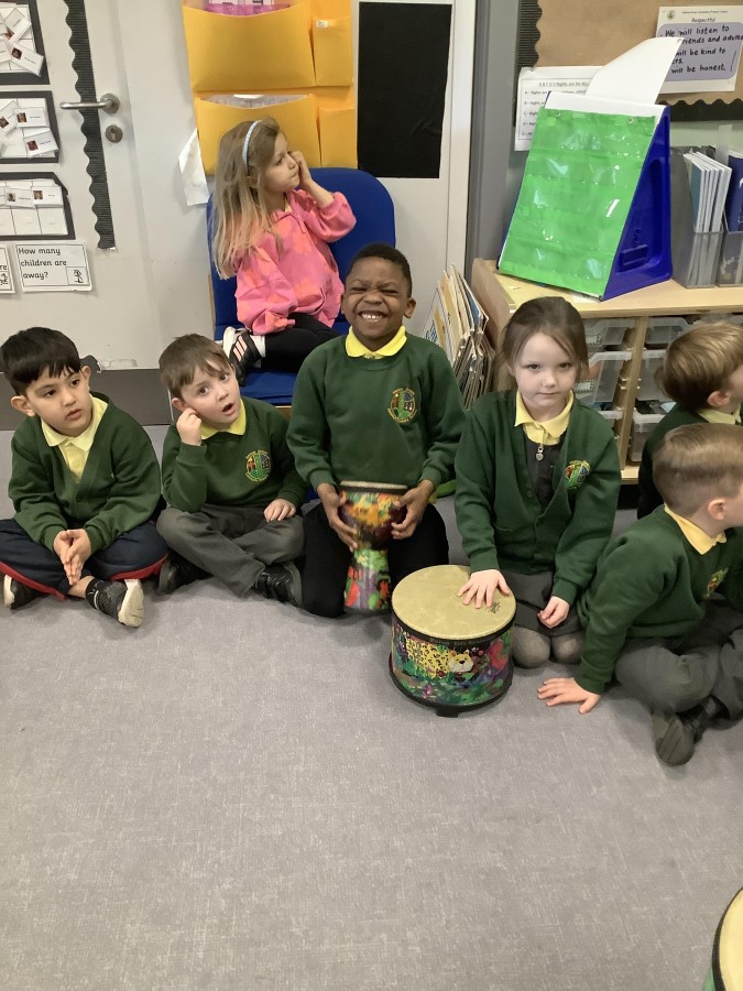 Reception have had a busy and exciting time learning about Africa. We started by reading We All Went on Safari and A is for Africa, which helped us learn about African animals, landscapes and daily life. We then enjoyed Tinga Tales and explored the colourful artwork of Edward Tingatinga. The children created sunset colour‑wash backgrounds and printed African animals using stencils in his style. Miss White also showed us traditional clothing, jewellery and photographs she collected while working in Africa, which the children found fascinating. In the creative area, they made their own jewellery using beads, pasta and paper plates. During music time, the children explored African drums and copied simple rhythms together.