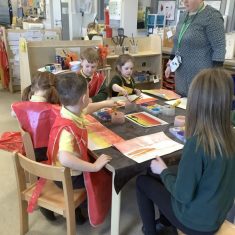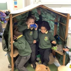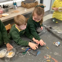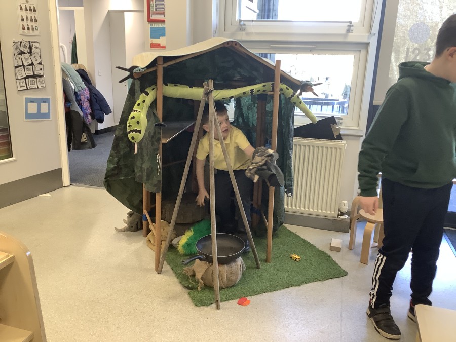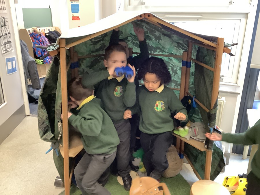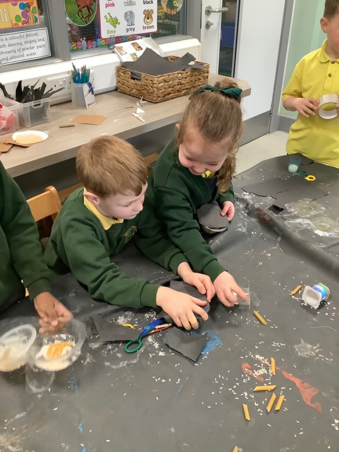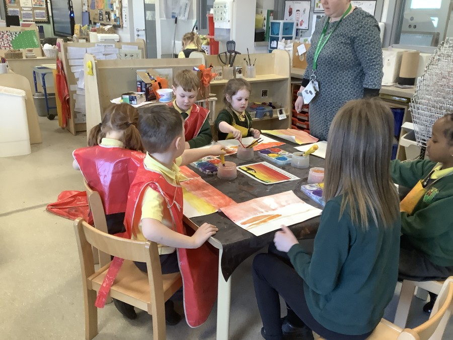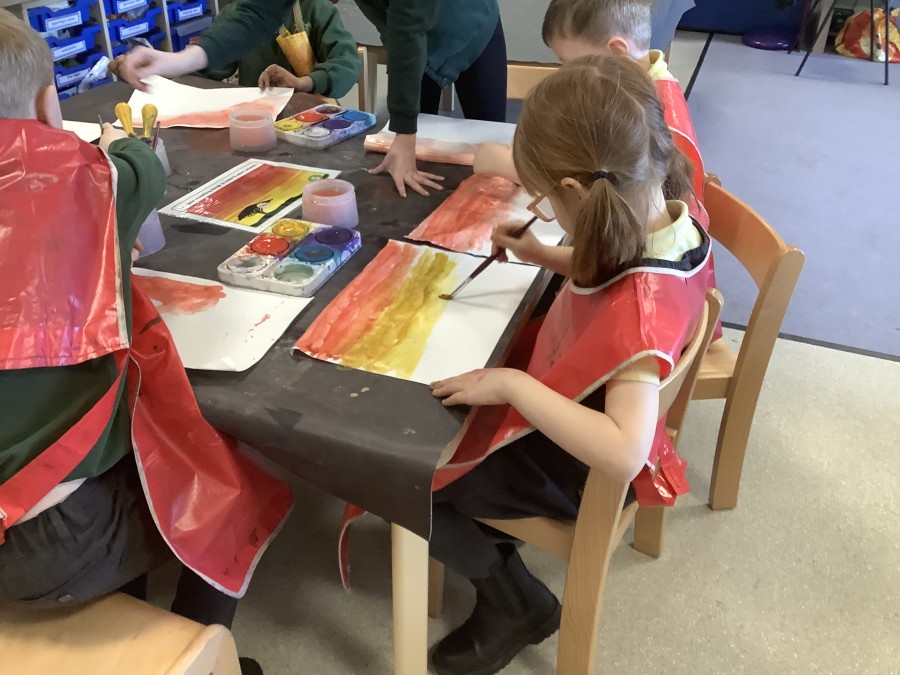 Reception have had a busy and exciting time learning about Africa. We started by reading We All Went on Safari and A is for Africa, which helped us learn about African animals, landscapes and daily life. We then enjoyed Tinga Tales and explored the colourful artwork of Edward Tingatinga. The children created sunset colour‑wash backgrounds and printed African animals using stencils in his style. Miss White also showed us traditional clothing, jewellery and photographs she collected while working in Africa, which the children found fascinating. In the creative area, they made their own jewellery using beads, pasta and paper plates. During music time, the children explored African drums and copied simple rhythms together.