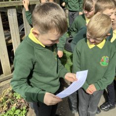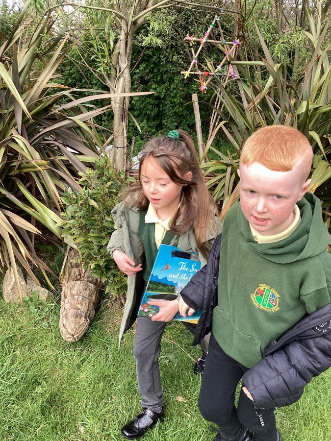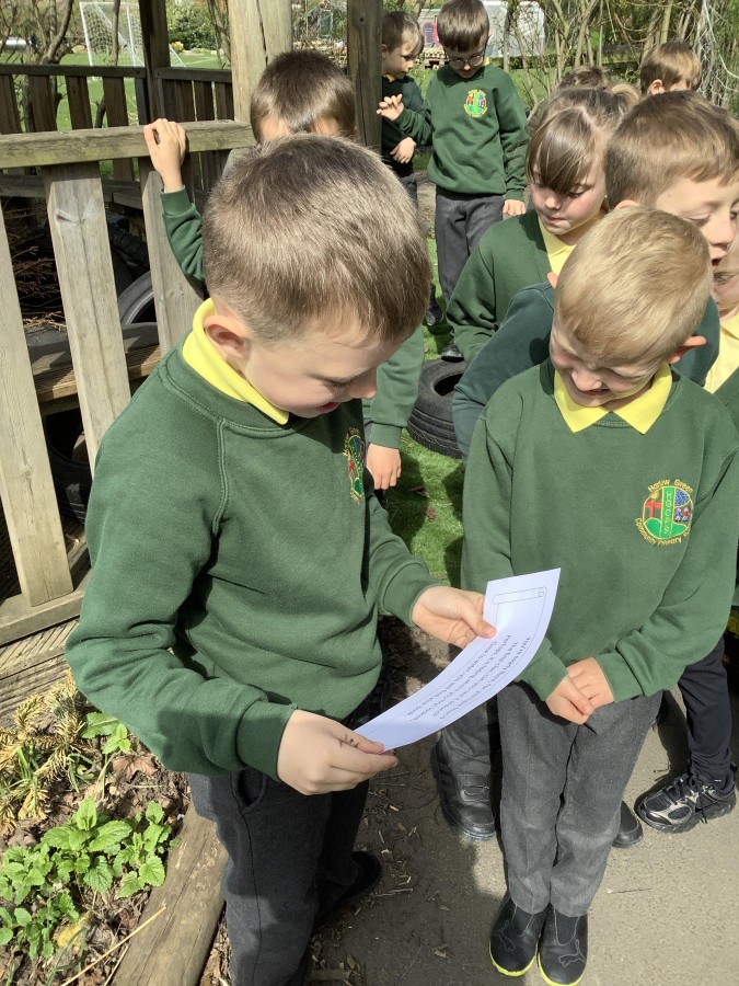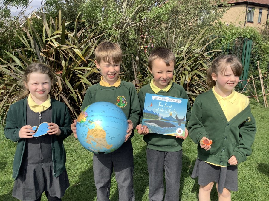 The children in Year 2 enjoyed an exciting treasure hunt outdoors in our school grounds this week. They were set a challenge to listen to some clues which would help them to guess what their English text would be this half term. The first clue was ‘Your book is set in the deep, blue sea. Find the water, oh, where it could be?’, which led them to our forest school pond and then to other clues which were a wooden snail, a wooden whale and a globe. The final clue led to the book ‘The Snail and the Whale’ by Julia Donaldson. This week, the children have been enjoying a wide range of Julia Donaldson’s stories, such as Zog, The Gruffalo and What the Ladybird Heard Next. They have enjoyed listening to all of the rhyming words in the books and adding new ones to their lists. Great reading everyone!