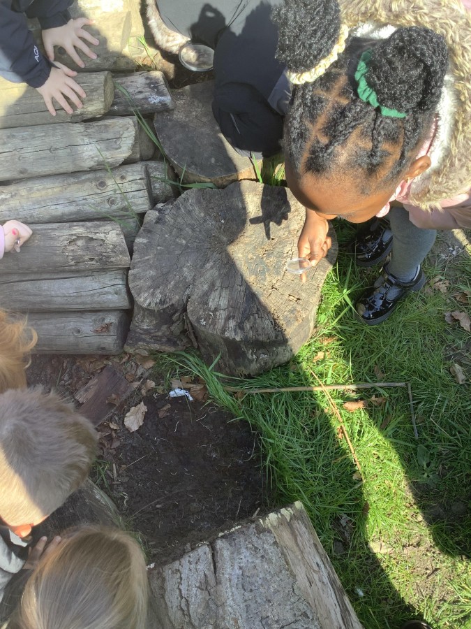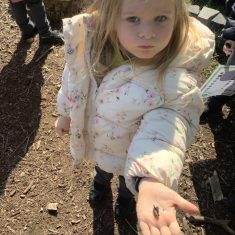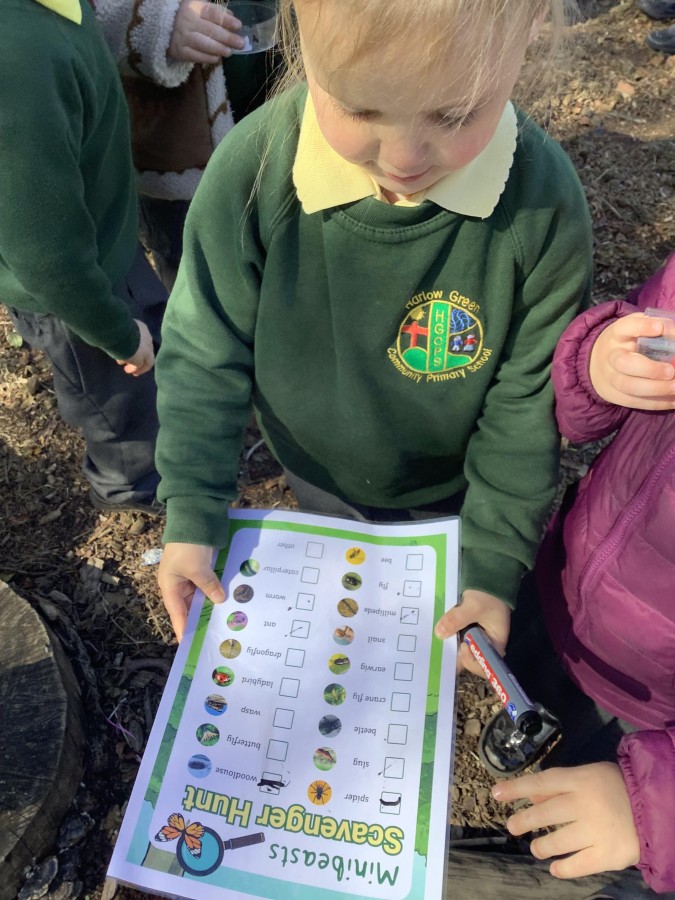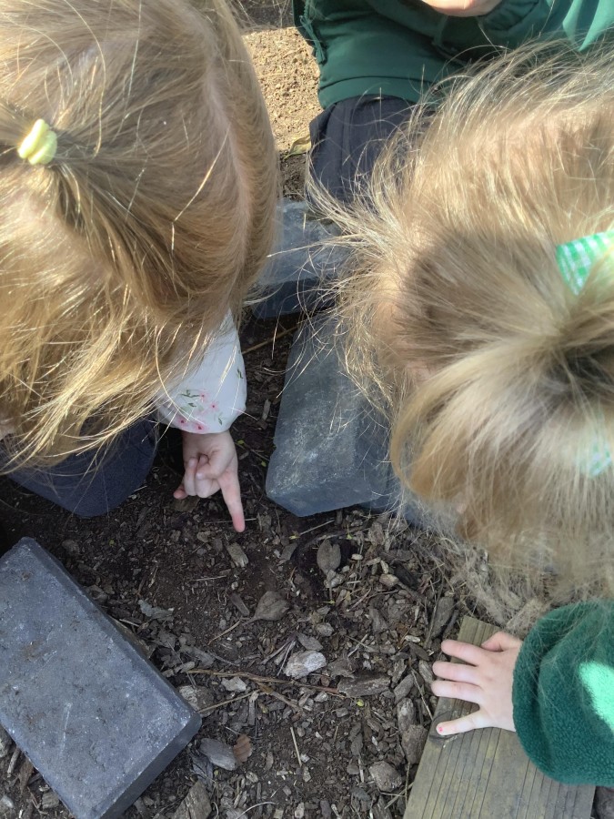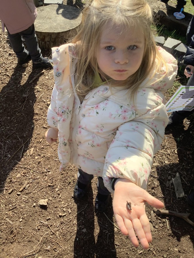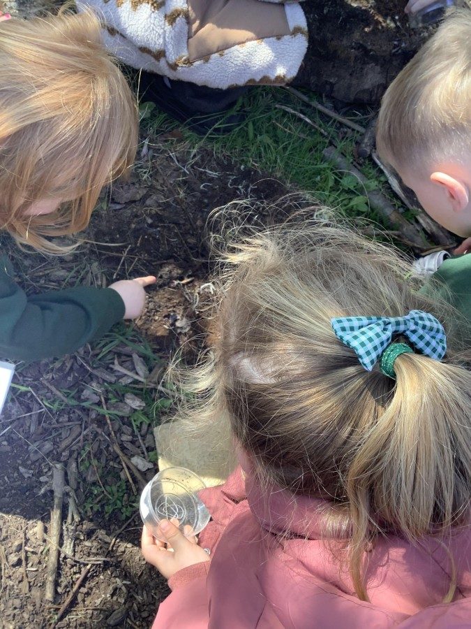 We could collect any finds in our bug collection pots. We used these to observe how the creepy crawlers moved and used magnifying glasses to look at them in more detail. We carefully checked them off on our lists. Sole interesting finds were; millipedes, woodlice, spiders, beetles, slugs, worms, and lots of ants. What a lovely day in Nursery!