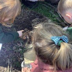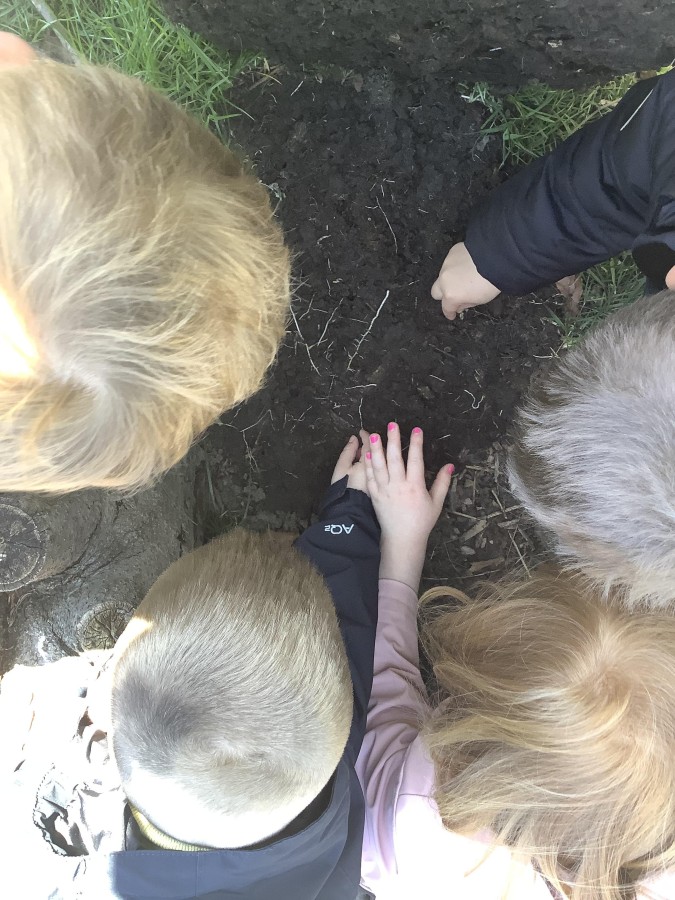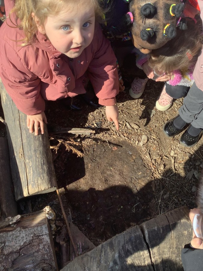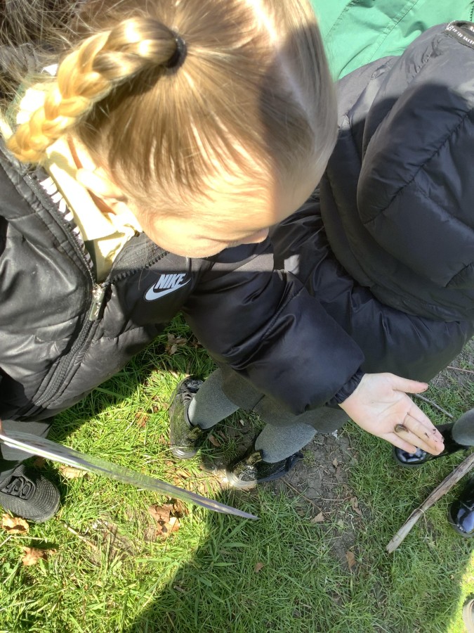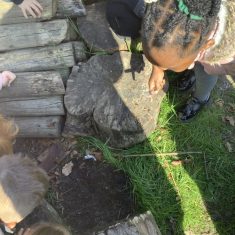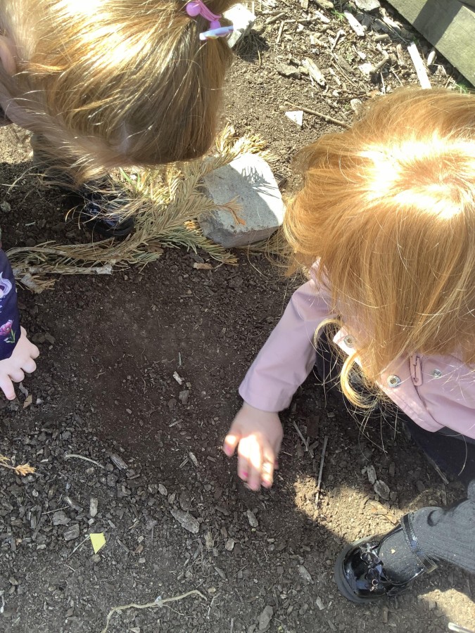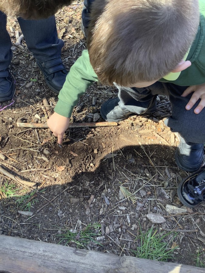 We could collect any finds in our bug collection pots. We used these to observe how the creepy crawlers moved and used magnifying glasses to look at them in more detail. We carefully checked them off on our lists. Sole interesting finds were; millipedes, woodlice, spiders, beetles, slugs, worms, and lots of ants. What a lovely day in Nursery!