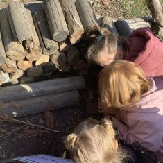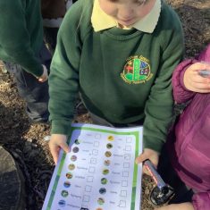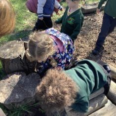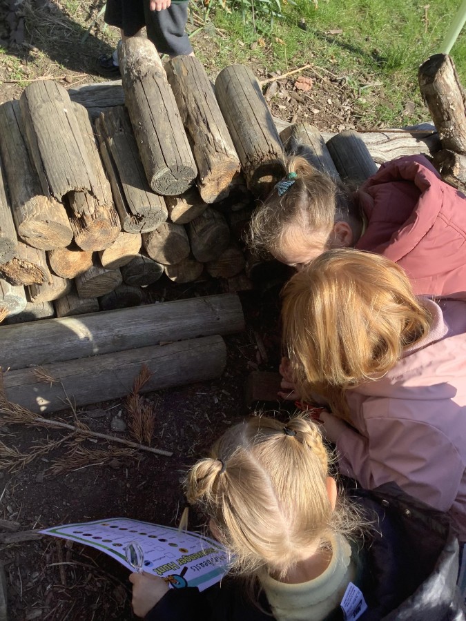We started the week finding out what minibeasts are and where they might live. We watched lots of videos and read stories. We found out lots of information and decided to see what we could find on our school grounds. We thought about what we learnt, and knew the perfect place to go – straight to the log store on the field!
