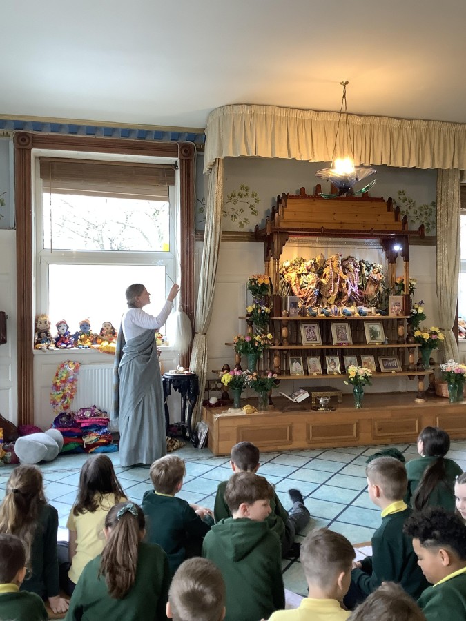 This week, year four visited the ISKON Hindu Temple in Newcastle, as part of their RE topic. Our host explained and demonstrated many of the key beliefs of Hindus, and how they practice their faith. The children heard about the Gods and Goddesses, explored important artefacts, were told stories, lis