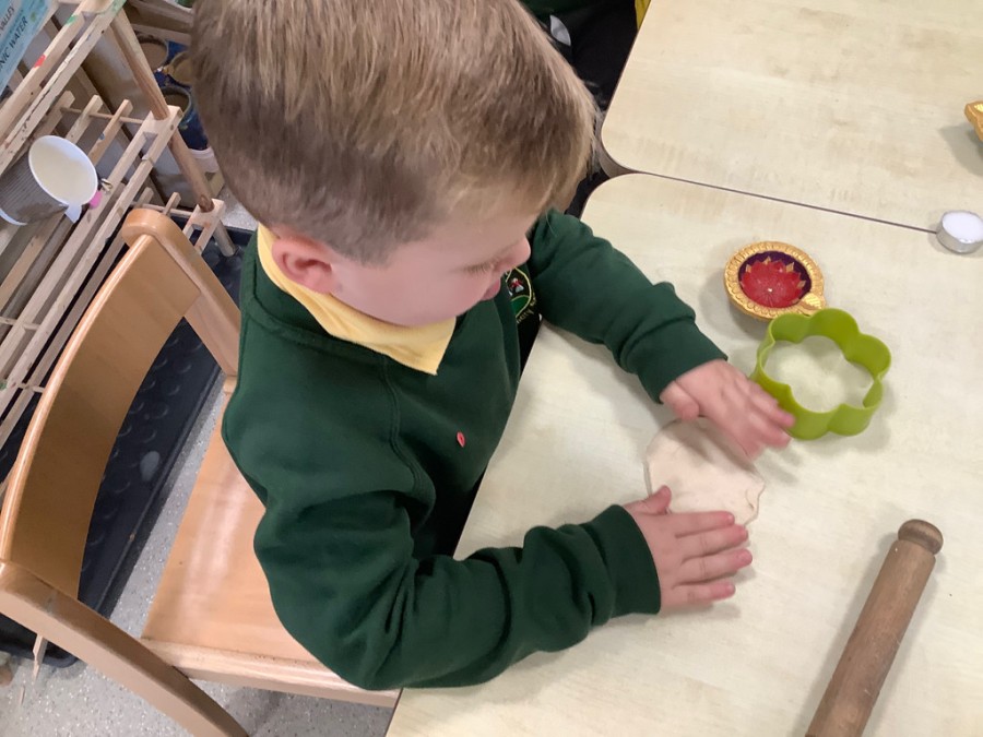 This week, Reception have been learning about the Hindu festival of Diwali and Bonfire Night. We started by reading ‘ Lighting a Diwa Lamp where we found out about the festival of Diwali. We learnt how to make Rangoli patterns with sand and made our own Diwa lamps with salt dough. Later in