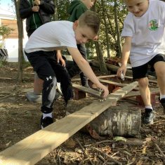 In our Forest School sessions we are still keeping focus on team work and a collaborative approach. In Year’s 4 and 5 they were asked: How do I work successfully as part of a team to construct a bridge for a child? The Rules: you can use sticks, branches and logs, but no machined wood the child