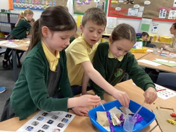 The children in Year 2 enjoyed a visit from Mel who works in the STEM team at Northumbria University. She began the workshop by asking the children to think about how they could look after the environment. She talked about fossil fuels and how they are found underground. The children were then