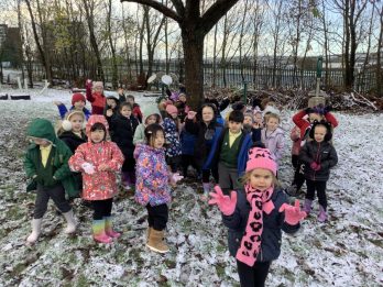 Playing a favourite boundary game is a whole different experience in the snow. Reception kept warm by finding the different landmarks around the site. This week as an additional challenge they were given more than one instruction, for example You’re only safe if you go the the Big Cherry Tree then t