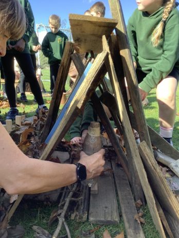In our Forest School sessions we are still keeping focus on team work and a collaborative approach. In Year’s 2 and 3 they were asked: How do I work successfully as part of a team to construct a bridge for a bottle? The Rules: you can use sticks, branches, logs, machined or natural wood the bottle