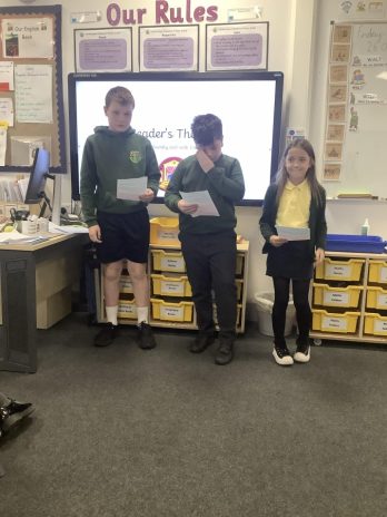 This week, the Year 6 children have been doing something a little bit different in guided reading – a programme called Reader’s Theatre. This involved the children having a text modelled to them where they could hear it being read for fluency, expression and intonation. Over the week, they then work